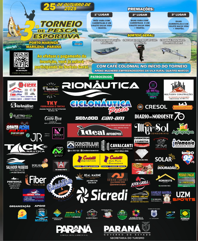 O município de Marilena (PR) se prepara para receber um dos eventos mais aguardados da região: o 3º Torneio de Pesca Esportiva de Porto Maringá, que acontece no dia 25 de outubro de 2025, a partir das 07h00 da manhã. O torneio é uma celebração ao esporte, à natureza e à integração da comunidade local, reunindo pescadores de várias cidades do Paraná e de estados vizinhos.
