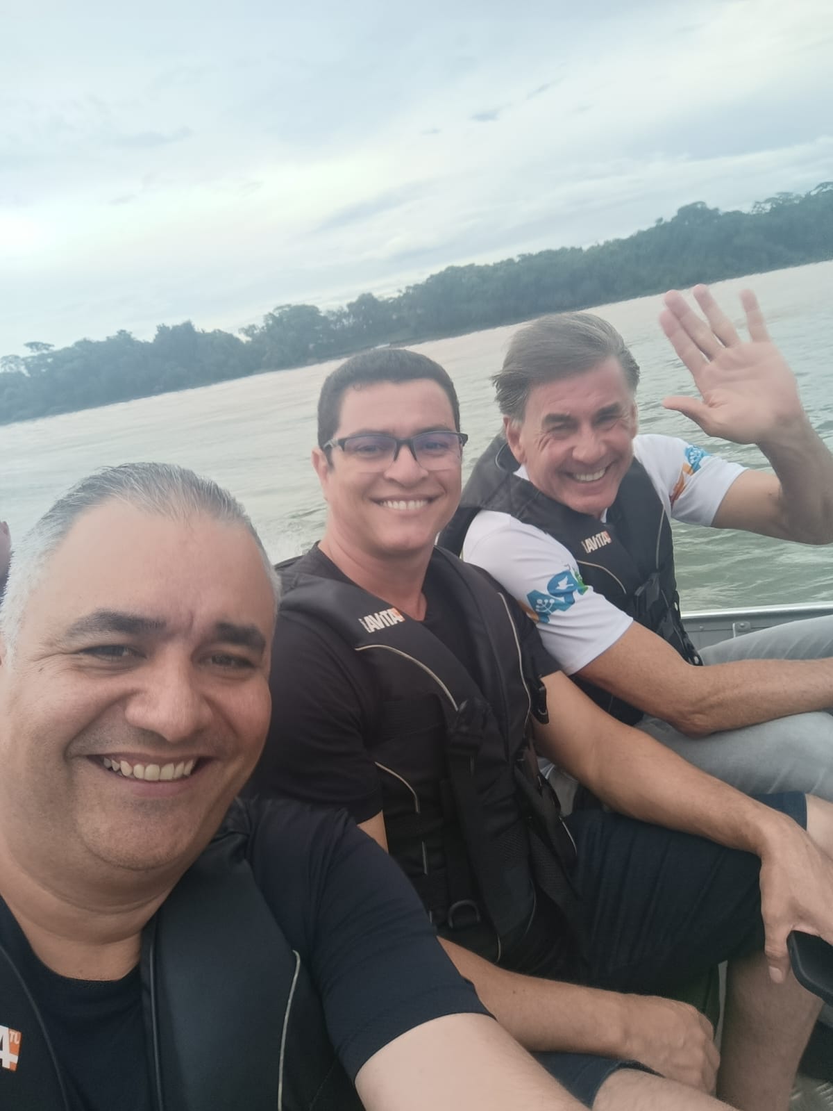 Secretário de Estado do Turismo do Paraná, Leonaldo Paranhos, acompanhado do prefeito Celio da Mata, vice-prefeito Júnior da Solar e autoridades municipais durante visita à orla, ilhas e praias de Marilena, no Porto Maringá, no Encontro dos Rios Paraná e Paranapanema.